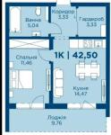 Площа — 42,5 м²