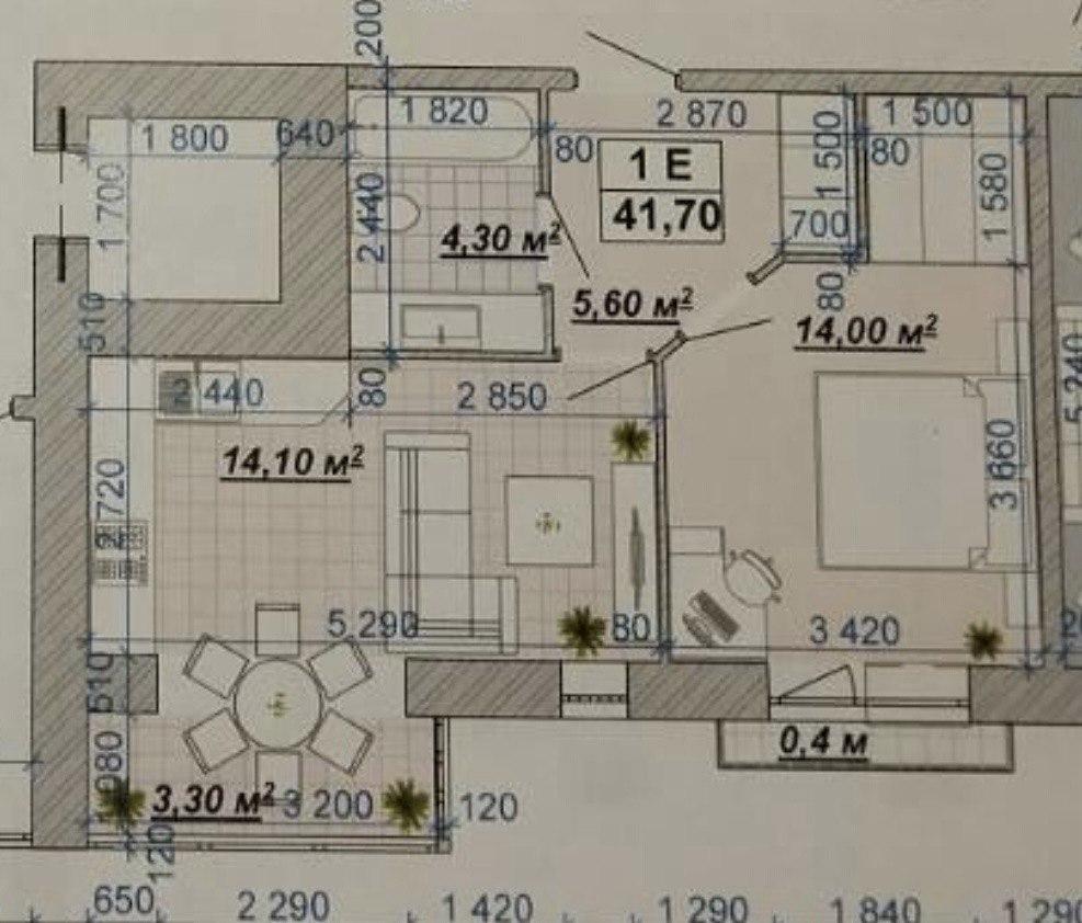 Однокімнатна квартира площею 41,7 м