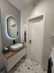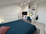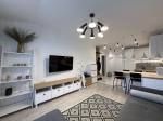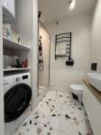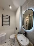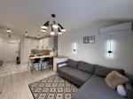 Продається стильна двокімнатна квартира площею 55 м² у центральній частині міста. Дуже вдале планування: простора кухня-студія, дві окремі кімнати та гардеробна.