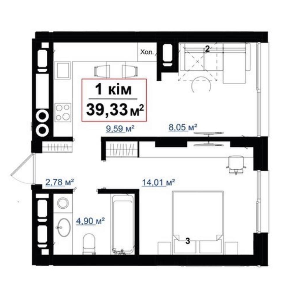 Пропонується до продажу стильна 1-кімнатна квартира у житловому комплексі від надійної будівельної компанії.